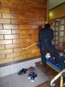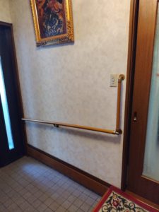 2025-03-19 掴まりやすい手すり設置 今日も玄関上がり框の段差にL型手すりを設置してきました 各床の高さに合わせて掴まりやすいL型フレキシブル手すりを設置中! 上がり框から玄関扉まで安心して移動出来ますね。