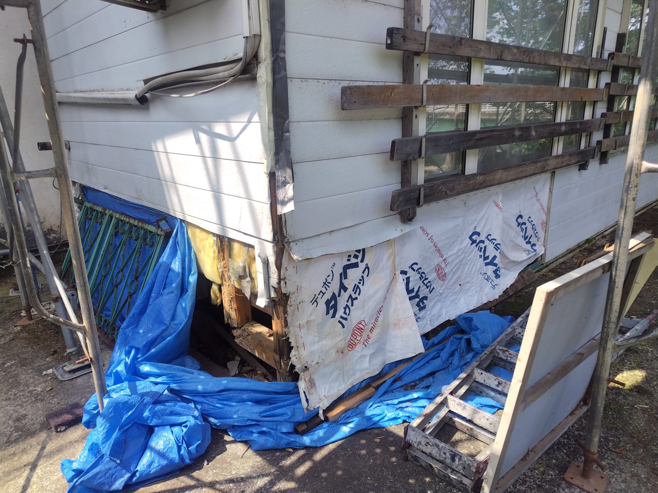 2025-06-23 只今床下点検中! 普段の床下の状況は変化してます これからの時期ますます注意が必要です。 外壁を一部剥がして床下点検へ 床材の変更で畳の下を点検中。木材が大変な事に! 早めの点検をお願い致します。