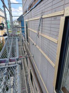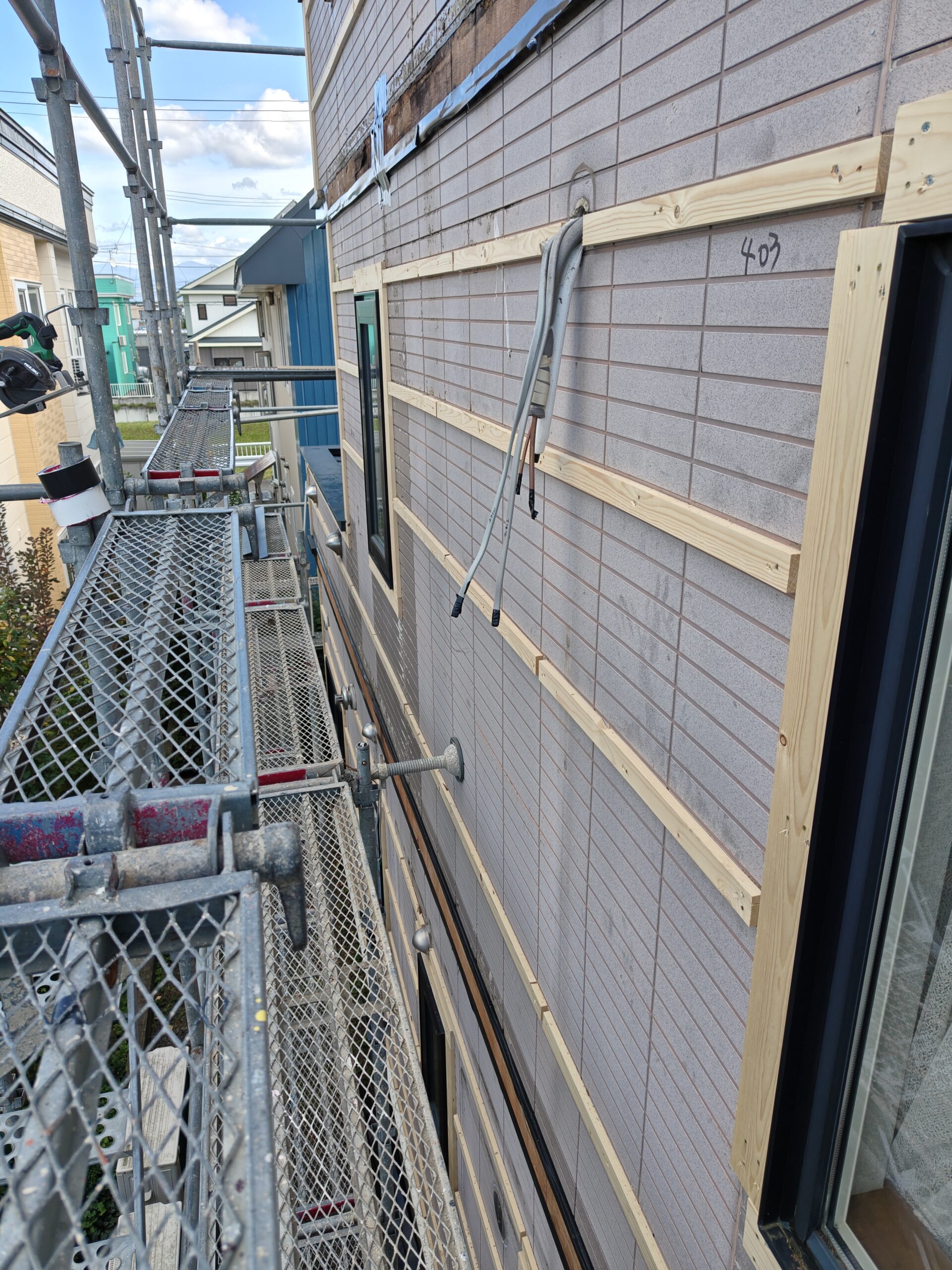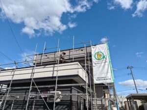 秋晴れの好天の中、外壁改修工事が順調に進んでます。
