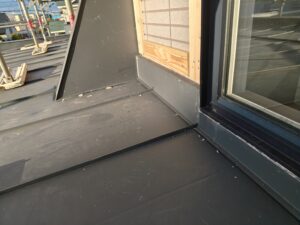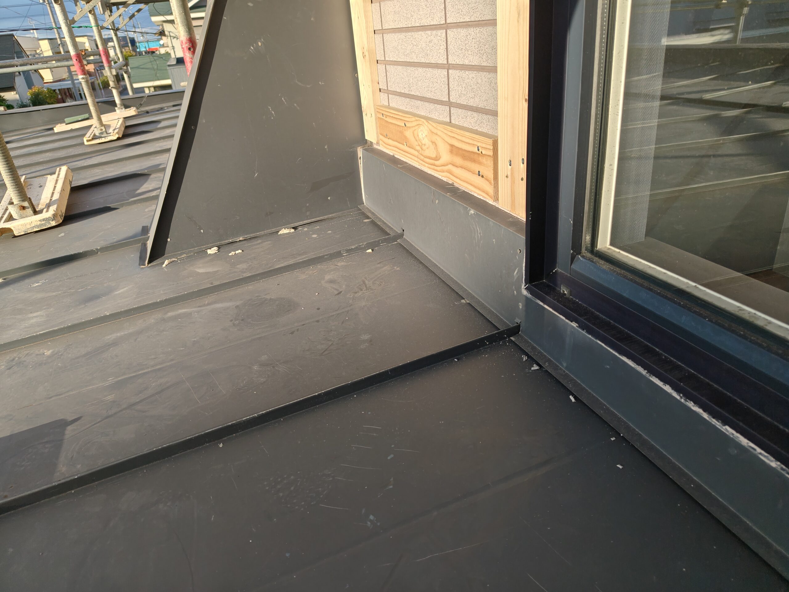 2025-10-08 外壁と屋根の納まり点検中 リフォーム現場で壁と屋根の納めについて現場で検討してます。 外壁リフォーム中に既存建物の取り合いが不十分で、雨漏りの原因につながる事もあるので、施工前に点検をしてます。