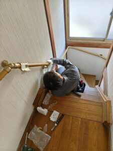 階段には外廻り連続手すりを設置中です!