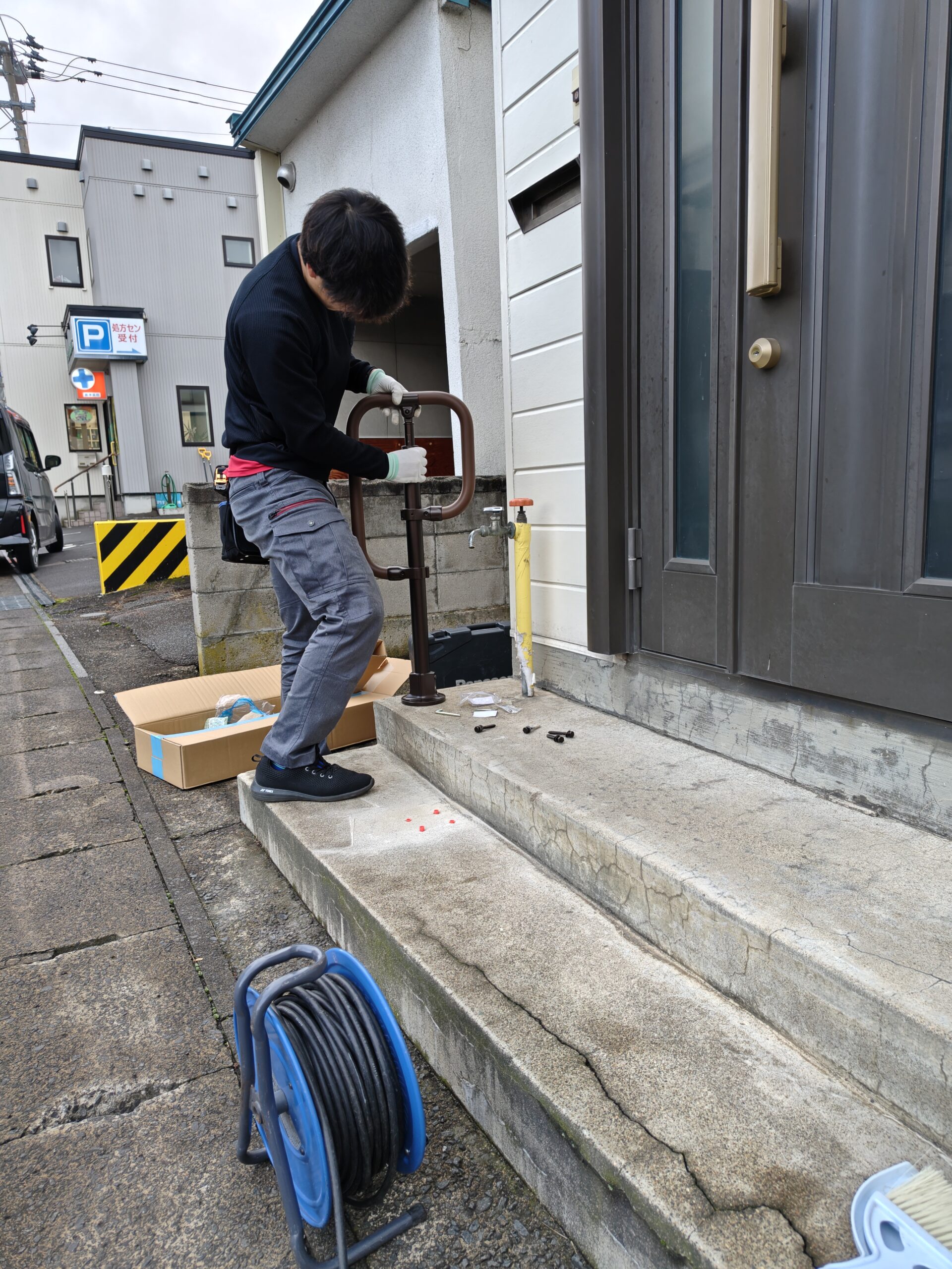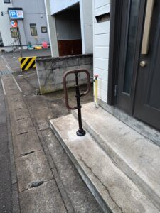 2025-11-22 掴まりやすくてスマートなかっこいい手すり 敷地内から玄関までがコンパクトで掴まる所が無くて、何とかお願い致します! 掴まりやすい高さにセットして 掴まりやすくてスマートな手すりを設置致しました!