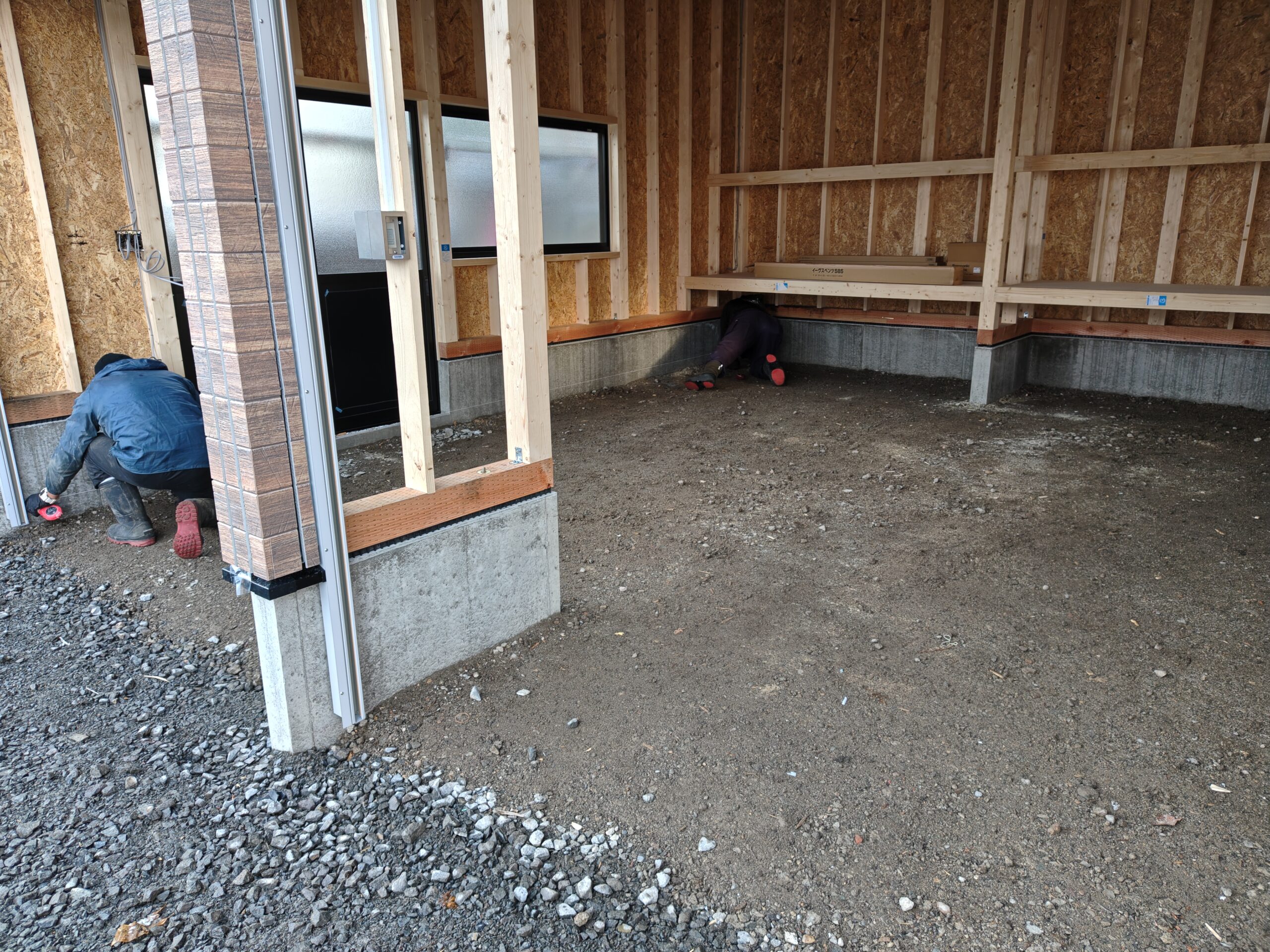 いよいよ車庫の土間コンクリート打設の段取りへ