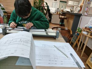 製図版で図面を書いて
