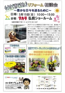 「秋だよ!全員集合!リフォーム相談会」を、いつもお世話になっております「タカラ弘前ショールーム」での開催が決定いたしました!👏