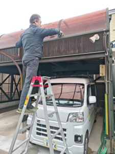 屋根や外壁の外廻りの点検中です
