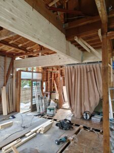 さらに空間を広く、構造的に強くする為に梁を補強してます。