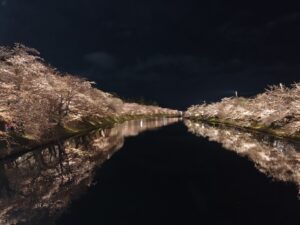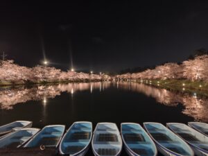 2026-04-15 夜桜お七で癒されて 今晩は早咲き夜桜お七のライトアップに癒されて来ました! 桜は5分咲きぐらいでちょうどいい 定番の写真スポットはやっぱりおすすめ 風も穏やかで癒されながら、今年も何か良い事ありますように!