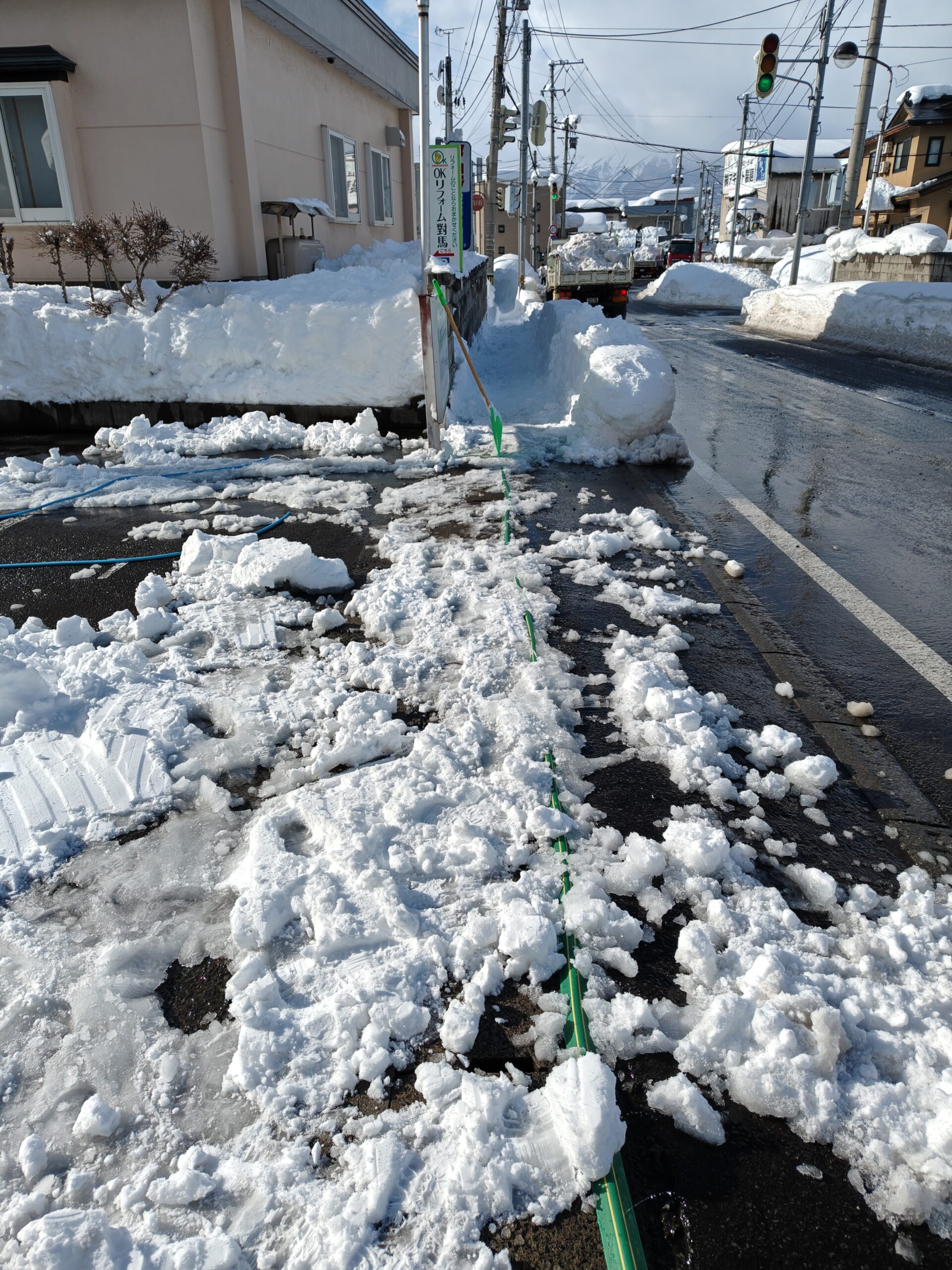 この大雪でも負けないように早朝からみんなで現場の除雪作業と現場段取り作業して