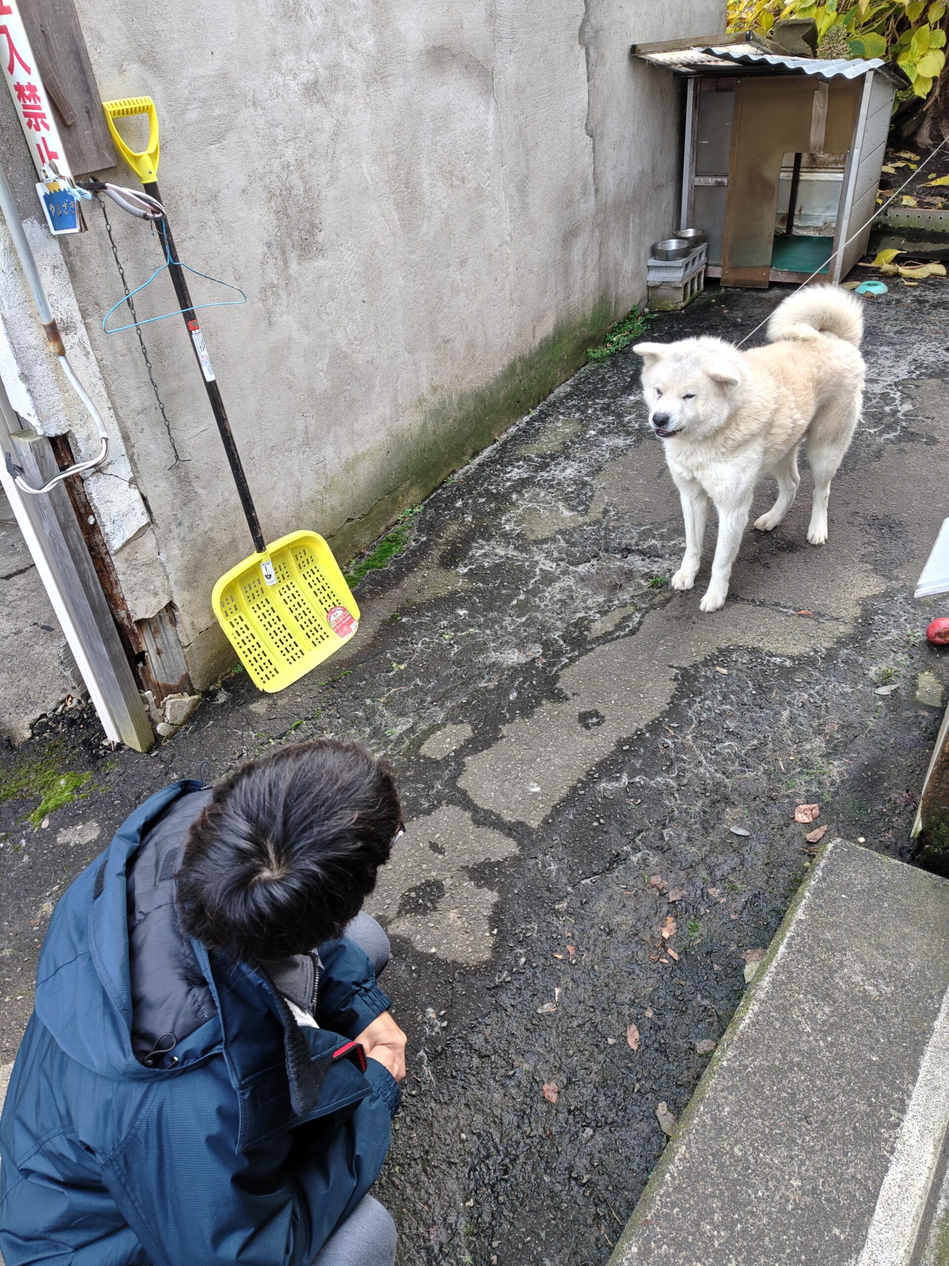2025-12-02 元気な番犬マルちゃん 今日お伺い致しましたお客様の玄関先で 元気よく歓迎してくれました! 最後は少しフレンドリーな感じでご挨拶して来ました! 寒さに負けず玄関先で番犬としてこれからもお願い致しますね!