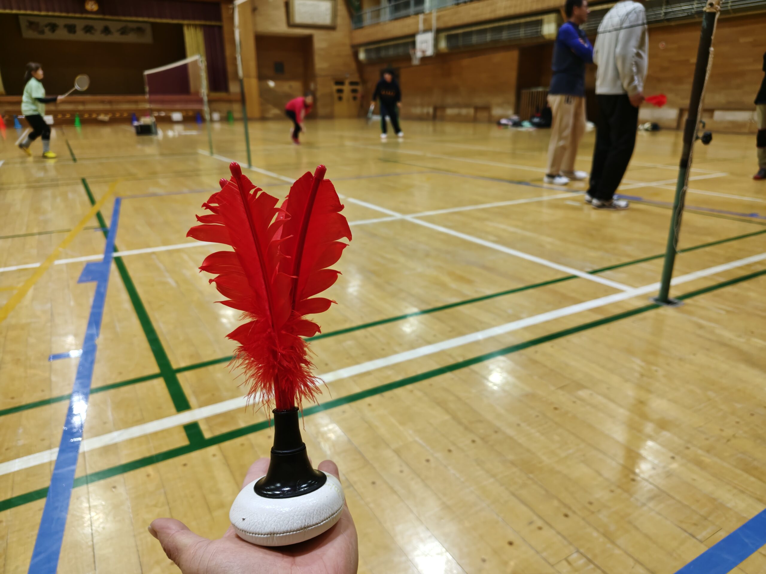 2025-11-11 やっぱりインディアカ 寒くなってきましたが、体育館の中は熱いです インディアカの羽付きボールを4人対4人でバレーのように3回で返すルールです。 ネットの高さは2m、バドミントンコートと同じ広さです。 けっこうラリーが続いたり、スパイク、ブロックなど決まったら面白いですよ 皆さまも一緒にいかがですか