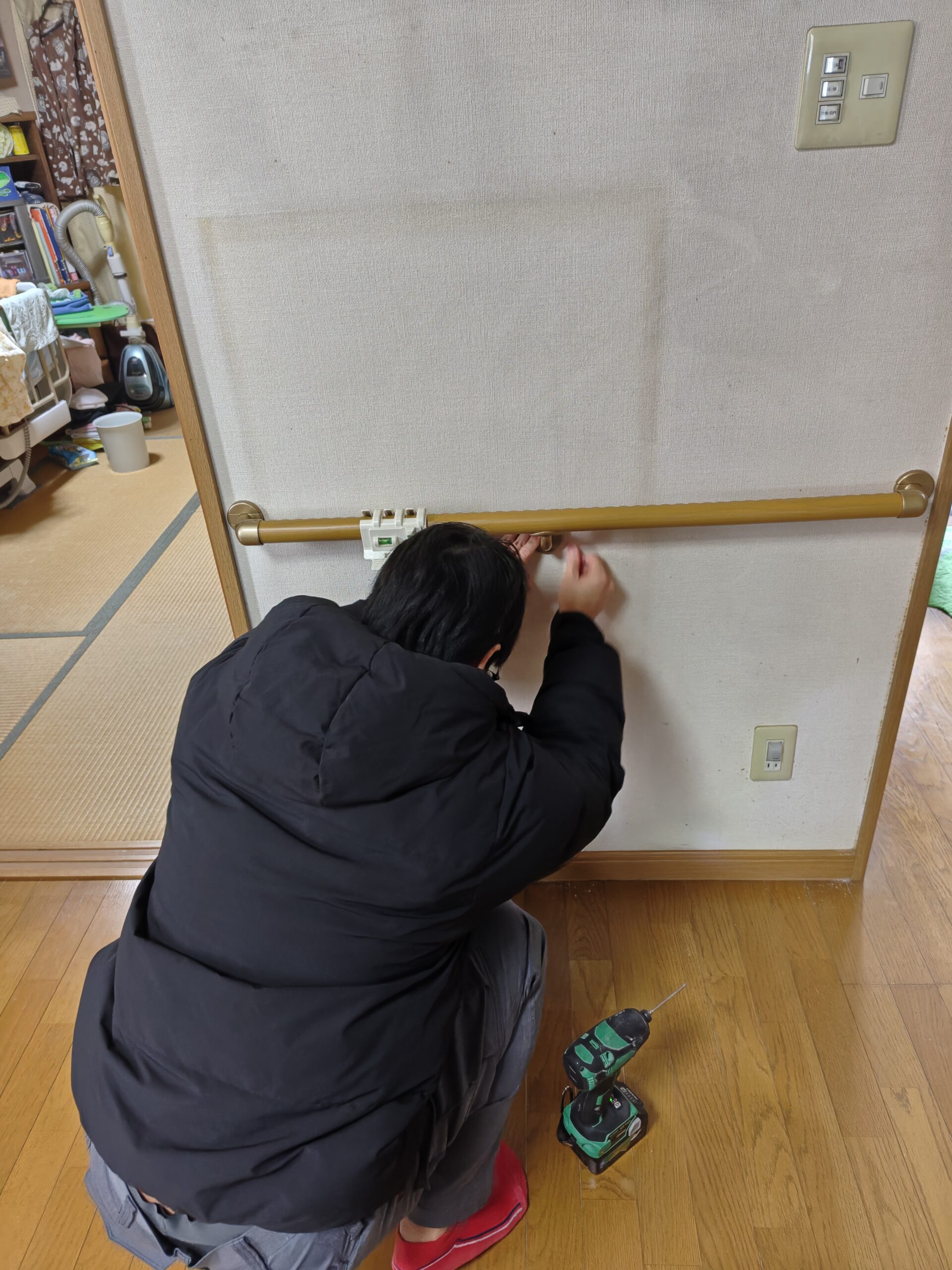 新年から左右縦横確認しながら慎重に手すり設置中です!