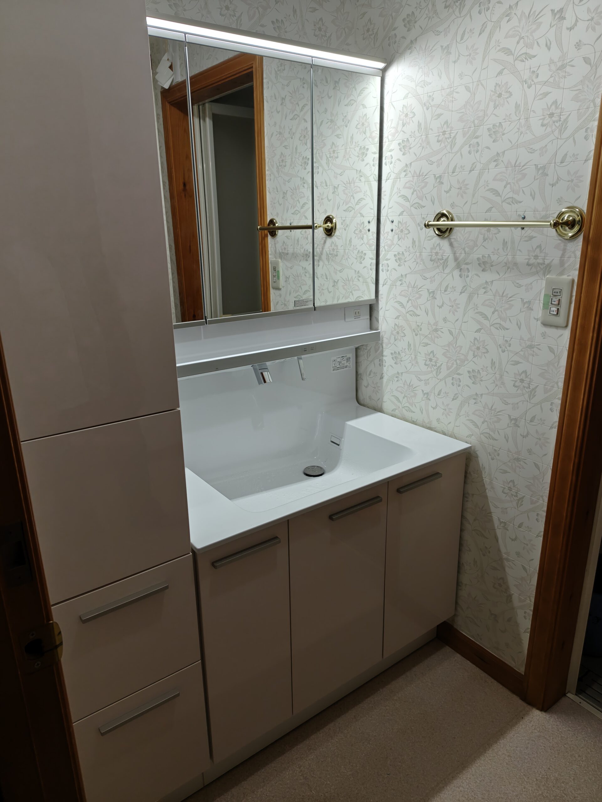 新しい洗面台に交換完了
