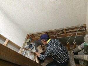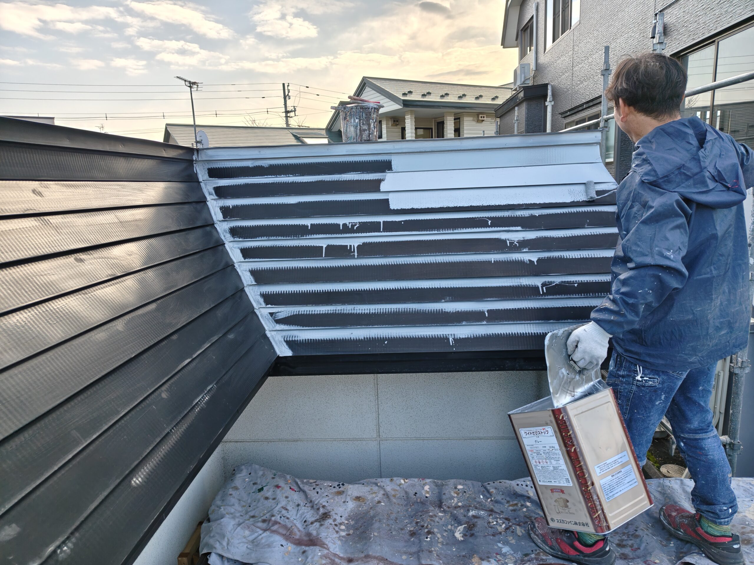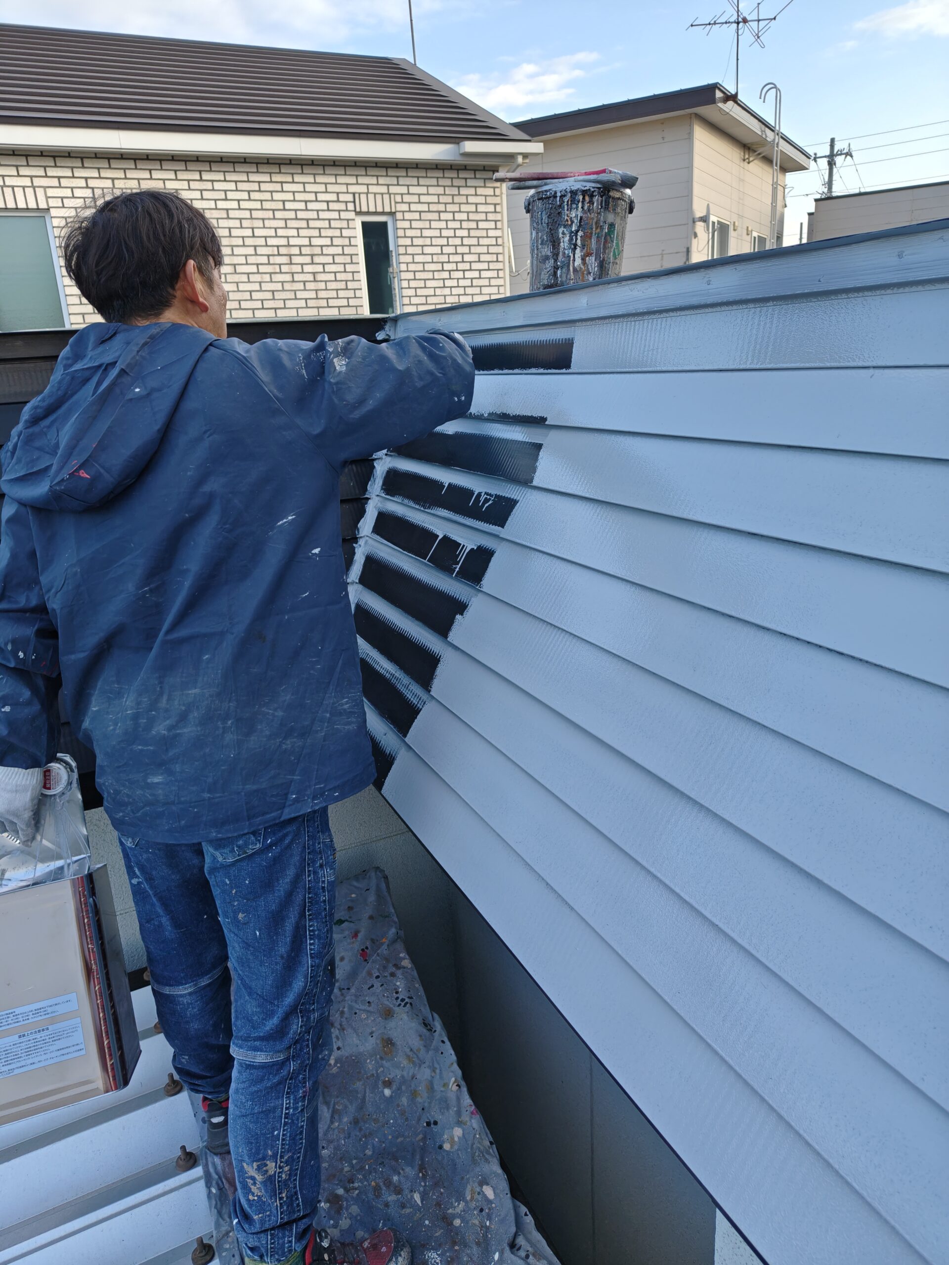 2025-11-28 カーポートの位置出し確認作業中 いよいよ雪の季節がすぐそこまで 雪対策として、カーポート設置をおすすめ致します! 道路からの離れ基準を確認して 90度ラインを出して対角線寸法確認して、柱位置だし、掘削作業へ入ります